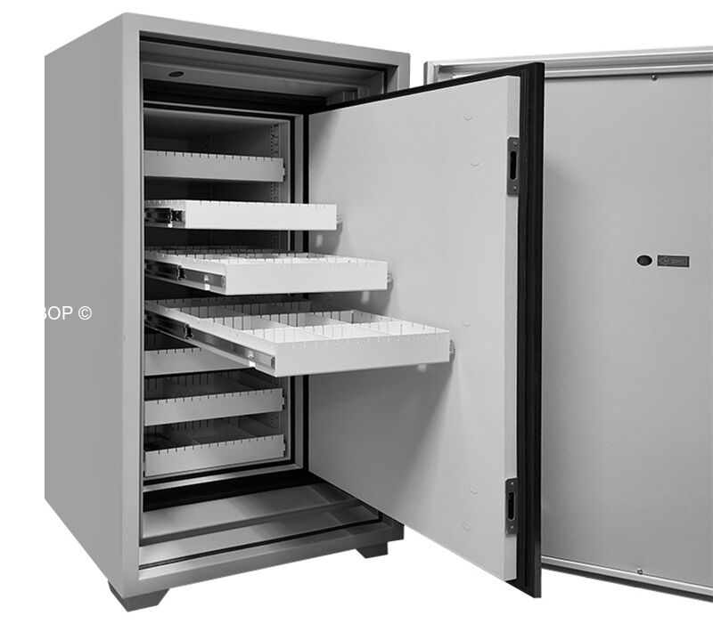 Дата-сейф 120DE (индекс завода-производителя DT2120EH) - самое экономичное решение для хранения магнитных носителей информации: в комплектации c 6 универсальными ящиками.