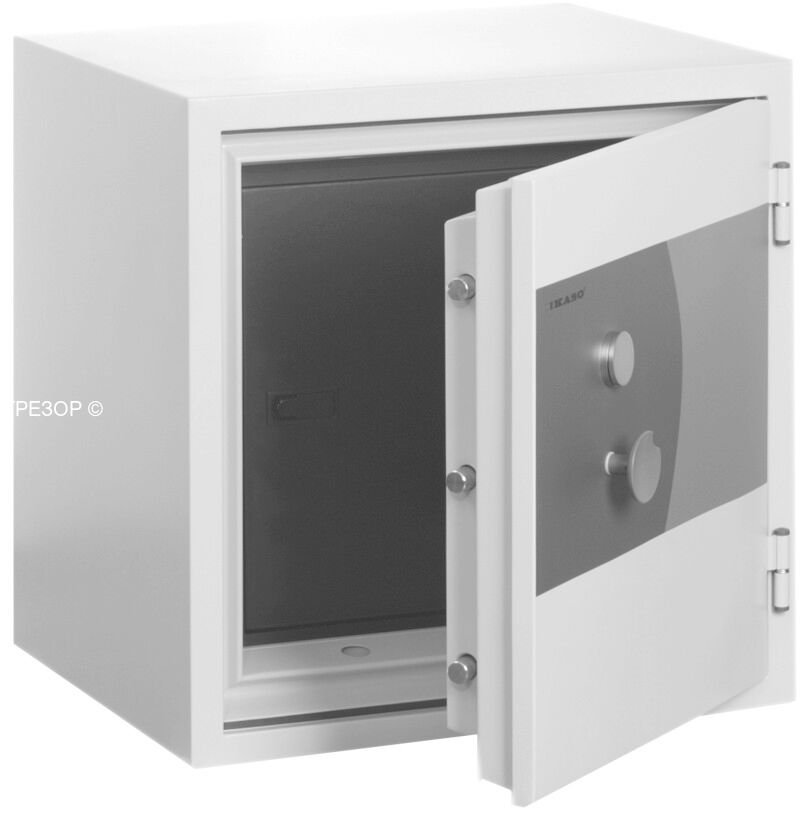 Огневзломостойкий сейф для хранения информационных носителей KASO модели PK 410D сертифицирован на защиту от взлома по классу S1 и огнестойкость 120 P. Версия с ключевым замком, окраска в цвет RAL 7035.